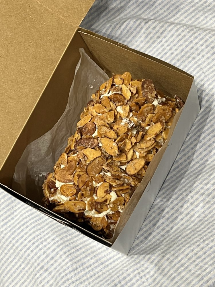 This version of our famous torte is what the Huffington Post called "The Greatest Cake America Has Ever Made". Melt in your mouth yellow cake, split and filled with vanilla pastry cream, iced in buttercream and covered in our secret recipe almonds. Does not require refrigeration. Serves 8.